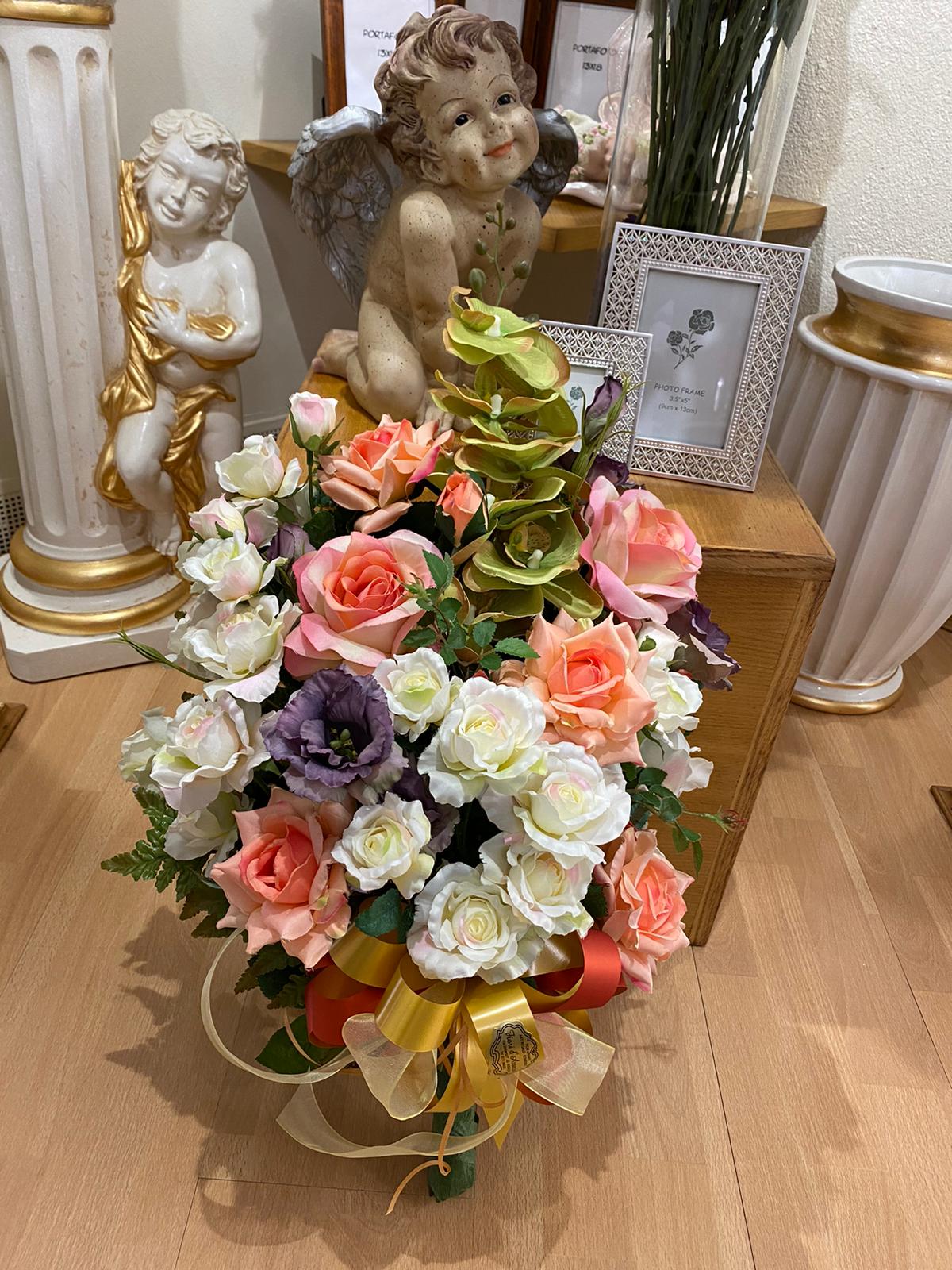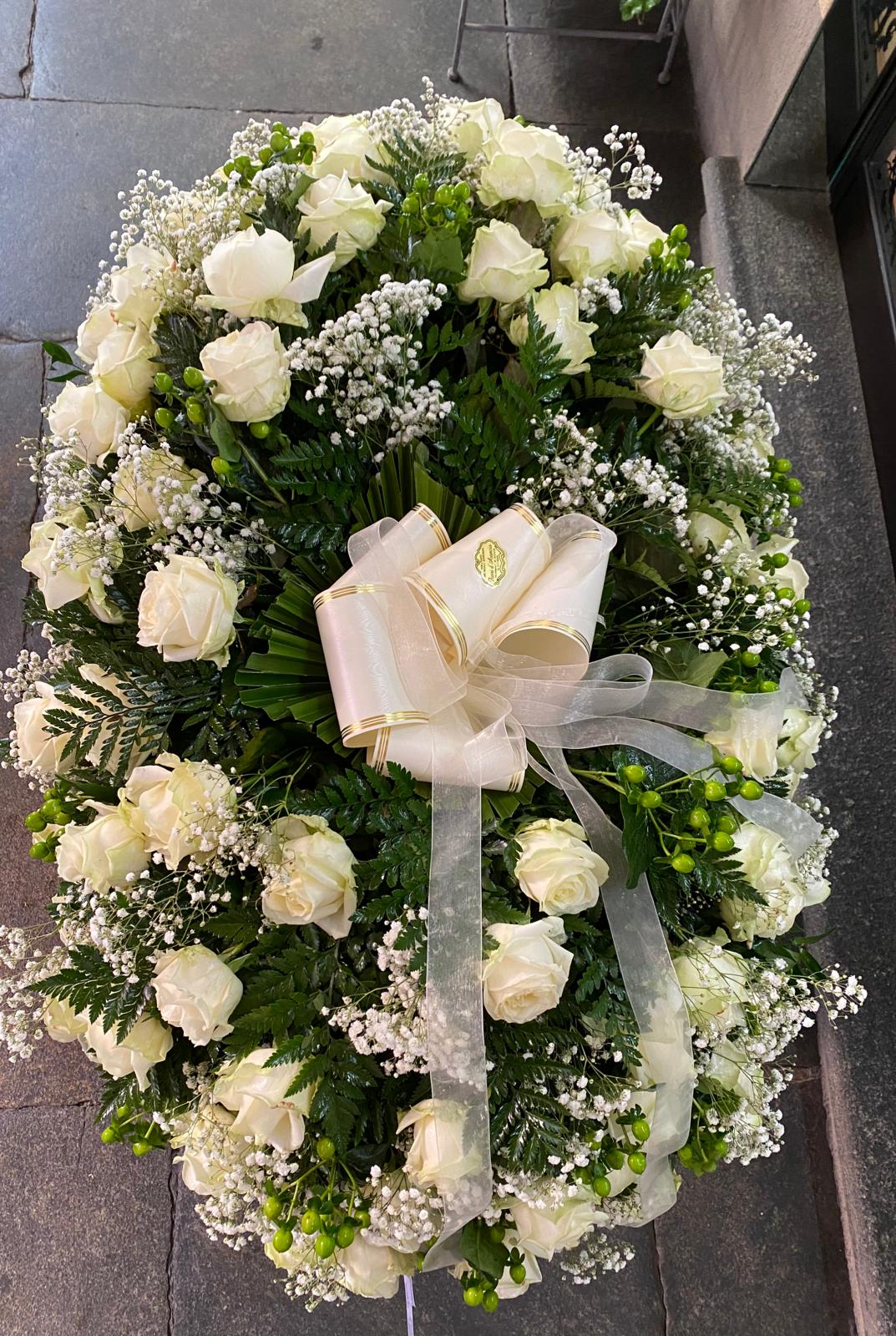 Sfogliate la gallery per scoprire gli addobbi floreali funebri realizzati presso il negozio Fiori d'Arancio in Via Umberto I 63 a Busca.